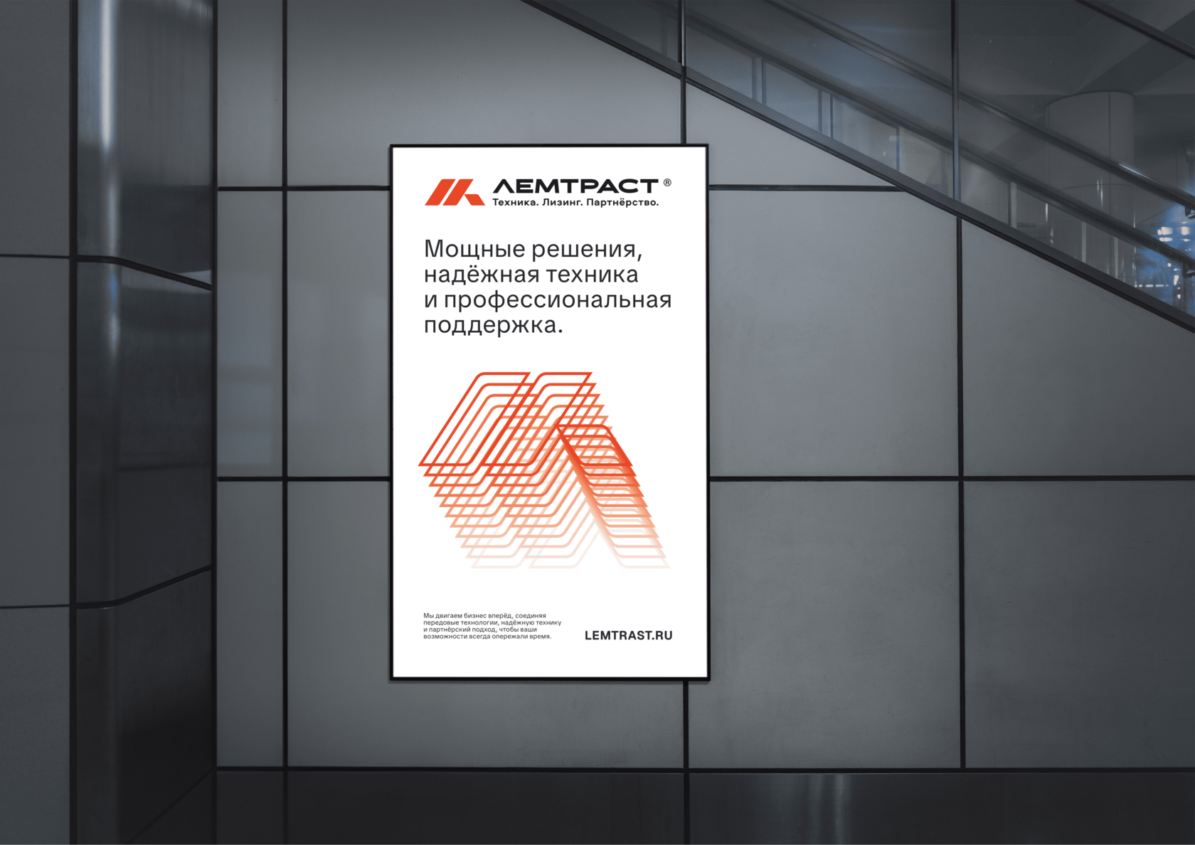 По просьбе клиента мы отказались от визуальных отсылок к автомобильной тематике — колёсам, шестерням и т.п. Вместо этого сосредоточились на абстрактной динамике. Фирменный знак состоит из трёх наклонных элементов, которые символизируют движение, прогресс и развитие.