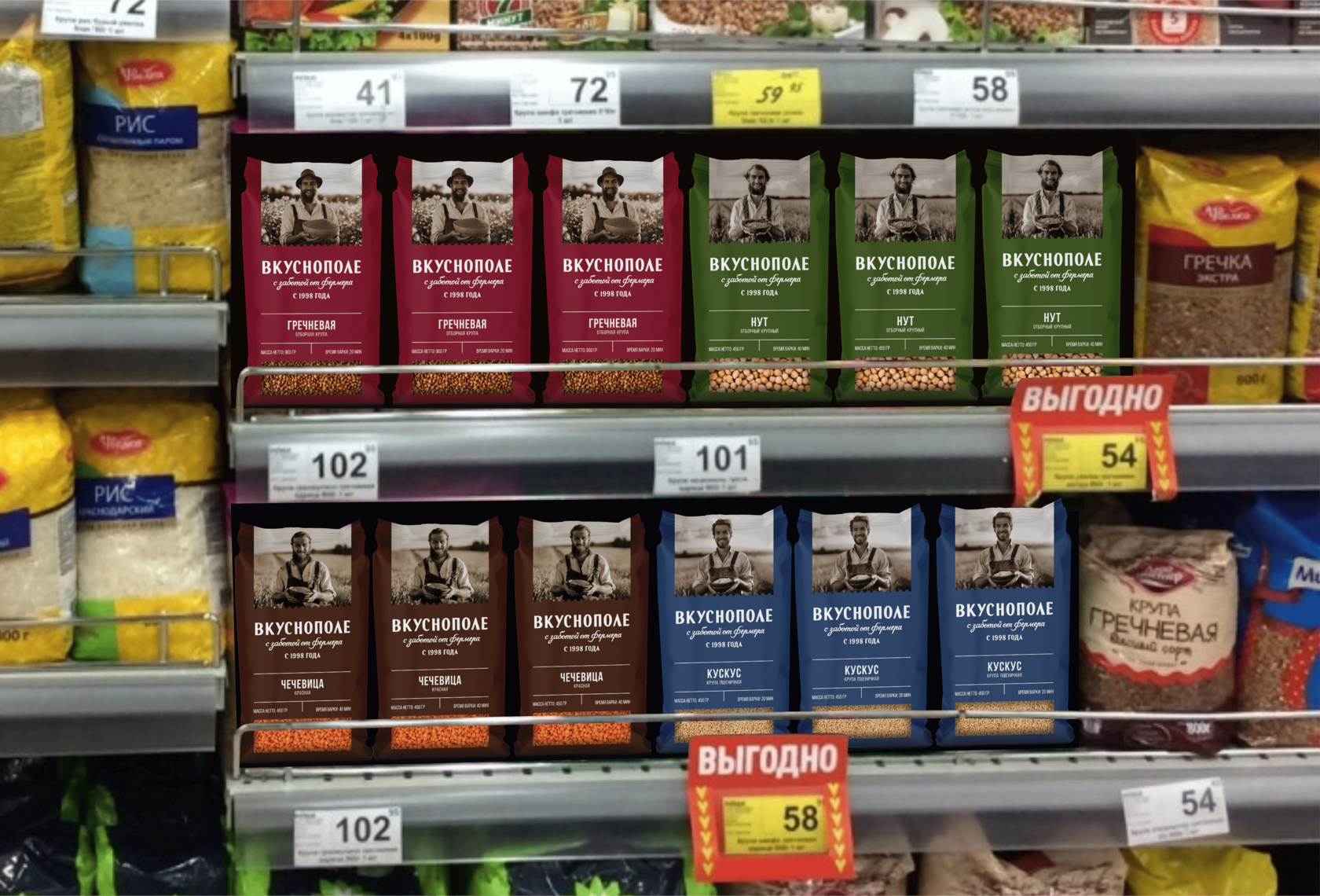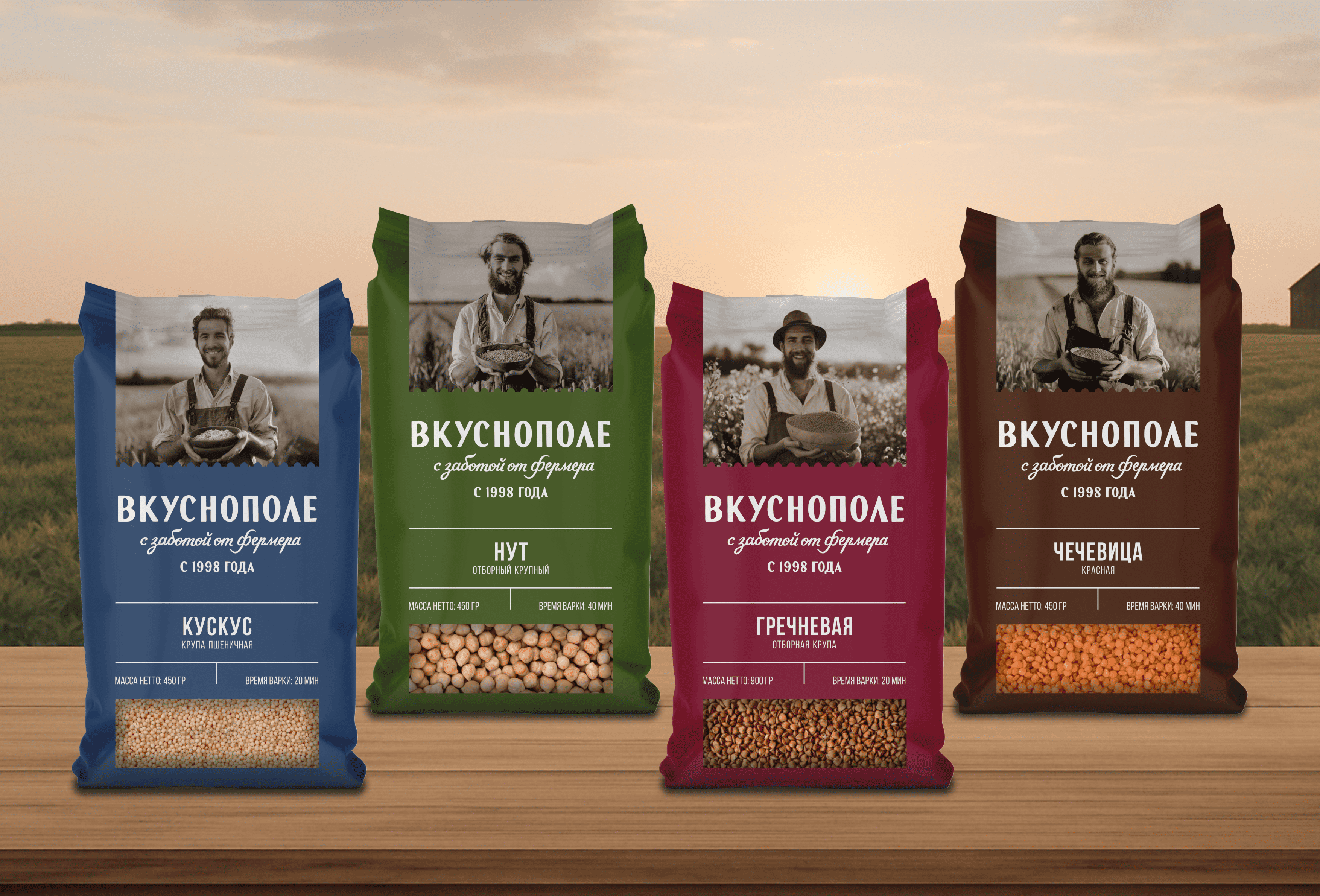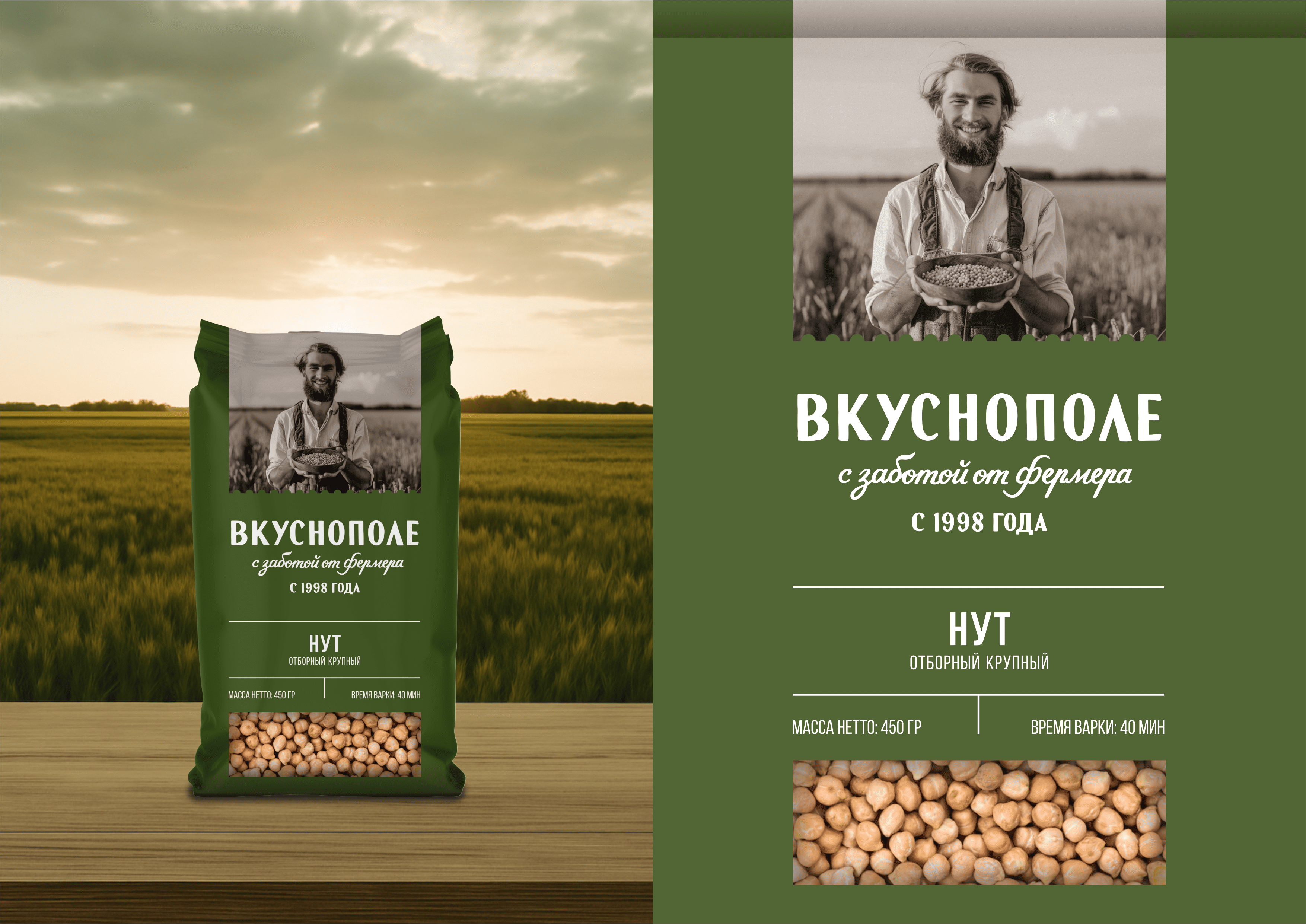 – общая дизайн-концепция торговой линейки; – разработка дизайна упаковки для гречки, нута, кускуса, чечевицы, муки.