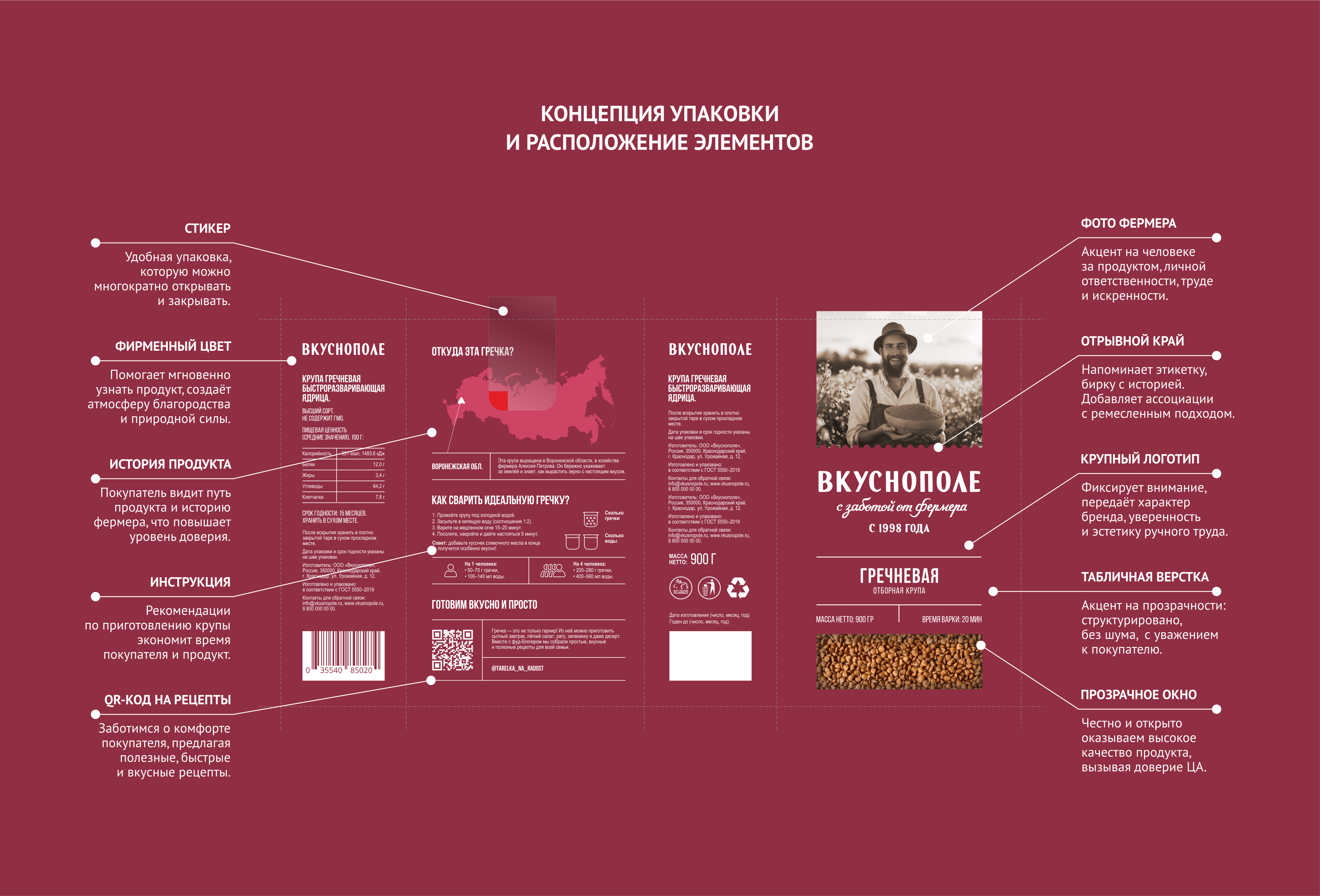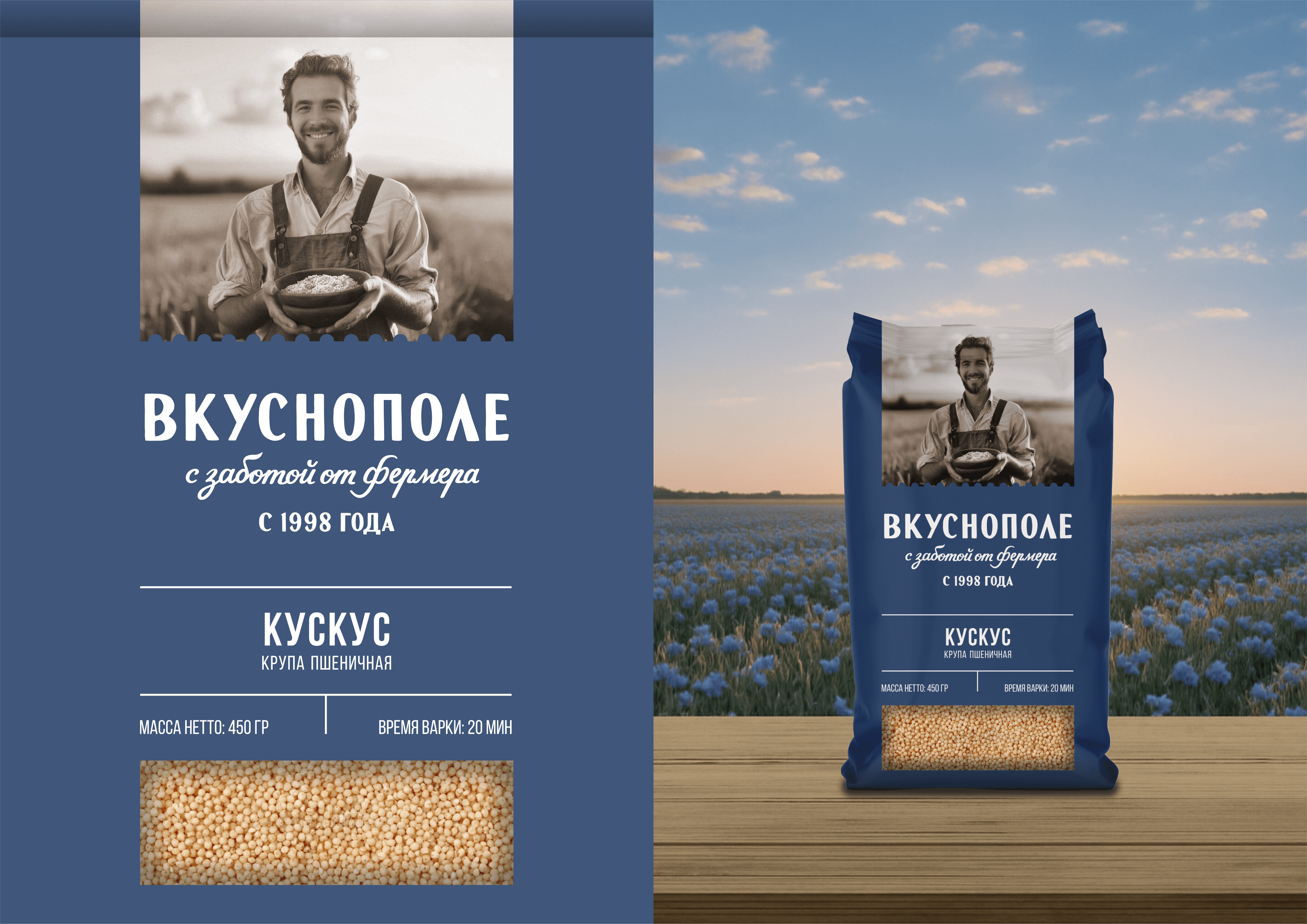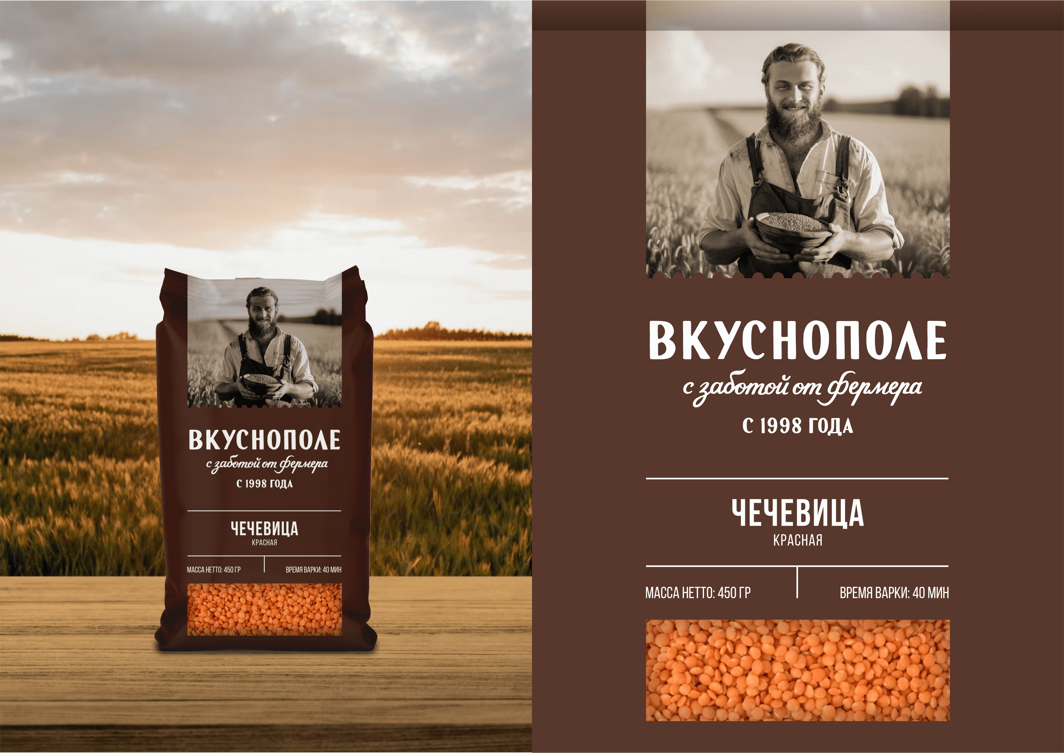 – общая дизайн-концепция торговой линейки; – разработка дизайна упаковки для гречки, нута, кускуса, чечевицы, муки.