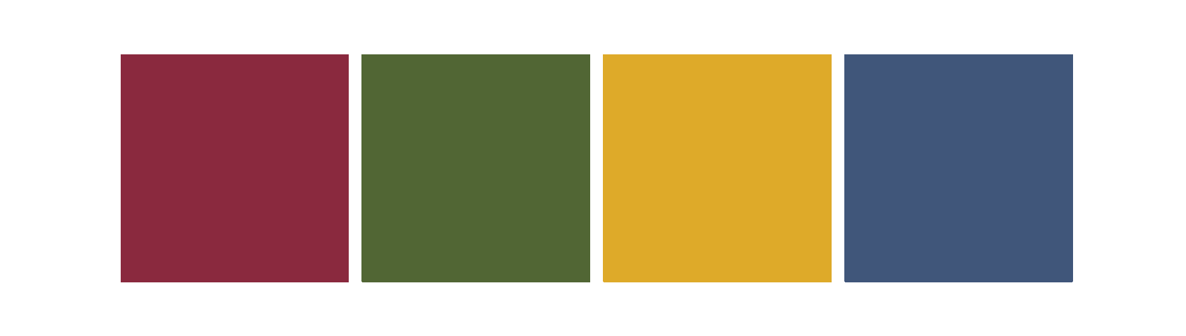Палитра основана на благородных, приглушённых оттенках, которые вызывают ассоциации с природой, зрелостью и доверием. Глубокий синий, бордовый, зелёный и тёплый жёлтый придают дизайну основательность, подчеркивают сезонность и спокойную энергию земли.