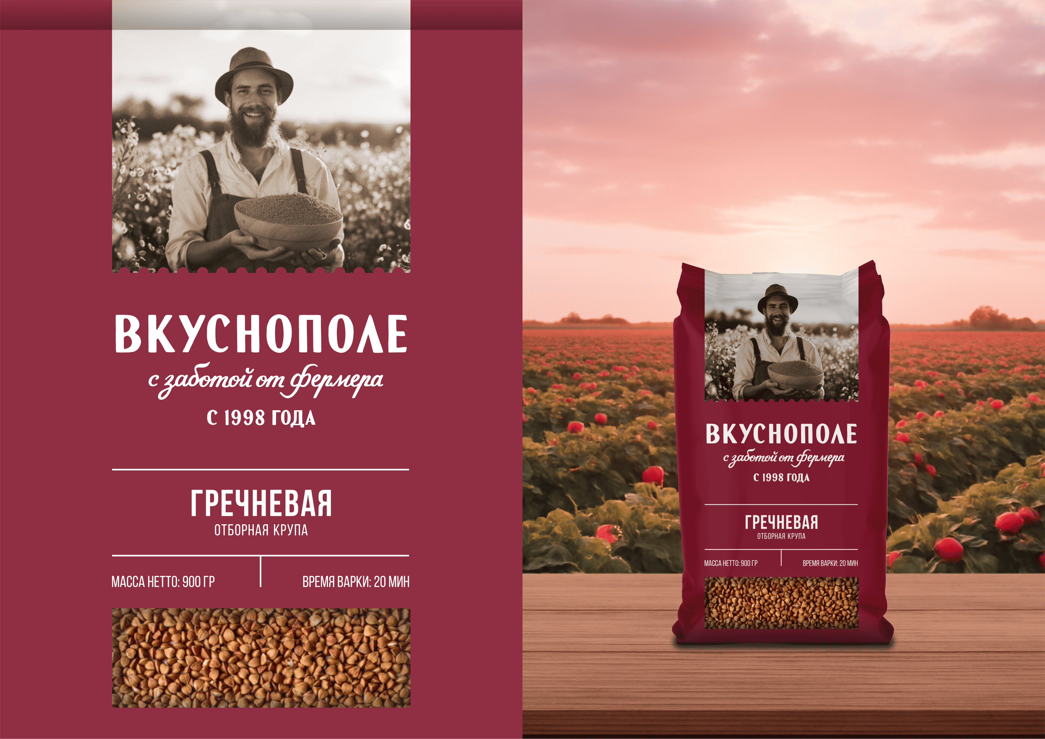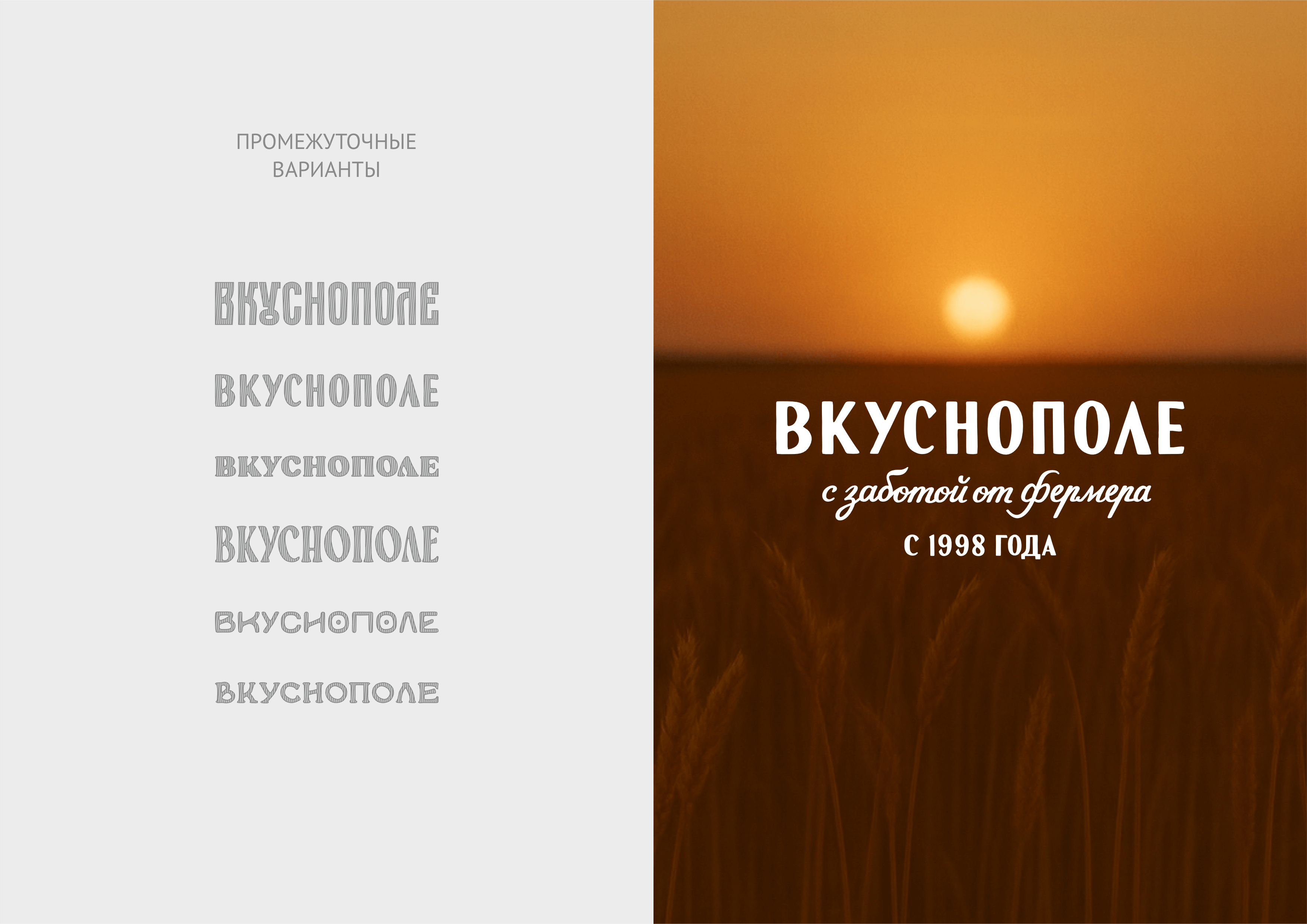 Так мы пришли к названию «Вкуснополе» — оно объединяет вкус продукта и образ земли, звучит тепло и по-родному. Простое, звучное и легко запоминающееся название, которое ассоциируется с натуральностью и фермерством, передаёт идею: «Вкус с земли, которую мы любим!».